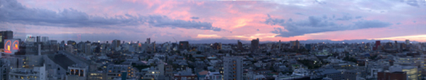 事務所からの夕景です。富士山がシルエット状に浮かび上がっています。